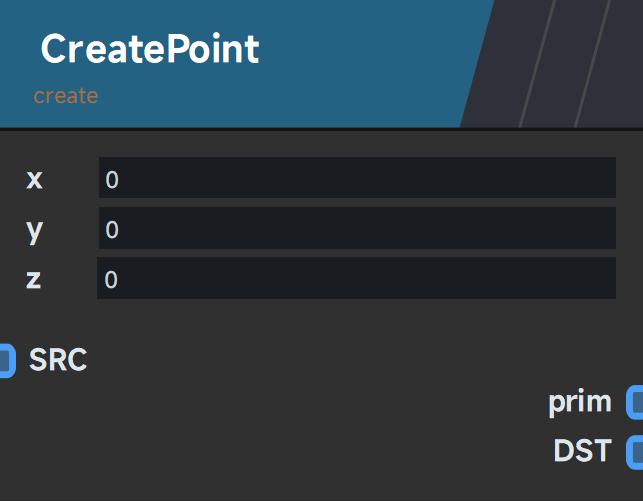 ## **节点作用** 该节点可以根据x、y、z坐标数值创建单个Vertex顶点。 ## **节点样式**  ## **端口用途** **Input【节点输入端口】(4个)** | 端口名称 | 端口用途 | | --- | --- | | x | 指定Vertex顶点的x轴坐标。(float) | | y | 指定Vertex顶点的y轴坐标。(float) | | z | 指定Vertex顶点的z轴坐标。(float) | | SRC | 影响解算先后顺序的端口。另一个节点A与该端口连接表示在执行本节点运算前先执行节点A。 | **Output【节点输出端口】(2个)** | 端口名称 | 端口用途 | | --- | --- | | prim | 输出生成的单个Vertex顶点。 | | DST | 影响解算先后顺序的端口。另一个节点A与该端口相连表示在本节点运算后执行节点A。 | ## **相关节点** [MakePrimitive(顶点生成)](https://doc.zenustech.com/project-5/doc-366/)